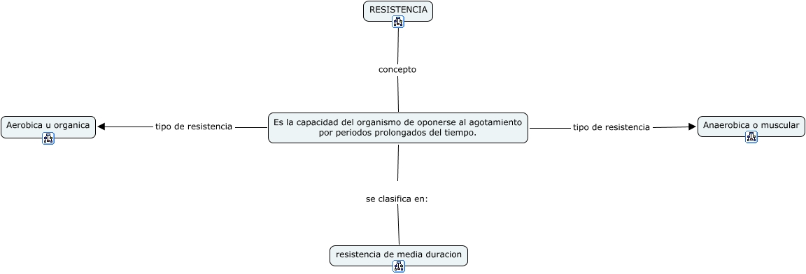 Este Cmap, tiene información relacionada con: j, Es la capacidad del organismo de oponerse al agotamiento por periodos prolongados del tiempo. se clasifica en: resistencia de media duracion, Es la capacidad del organismo de oponerse al agotamiento por periodos prolongados del tiempo. tipo de resistencia Aerobica u organica, RESISTENCIA concepto Es la capacidad del organismo de oponerse al agotamiento por periodos prolongados del tiempo., Es la capacidad del organismo de oponerse al agotamiento por periodos prolongados del tiempo. tipo de resistencia Anaerobica o muscular