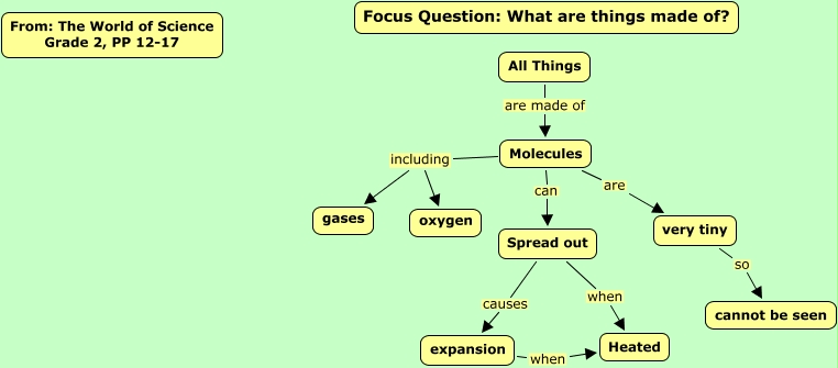 This Concept Map, created with IHMC CmapTools, has information related to: The World of Science, Pages 12-17, All Things are made of Molecules, very tiny so cannot be seen, Molecules including oxygen, Spread out causes expansion, Spread out when Heated, Molecules are very tiny, expansion when Heated, Molecules including gases, Molecules can Spread out