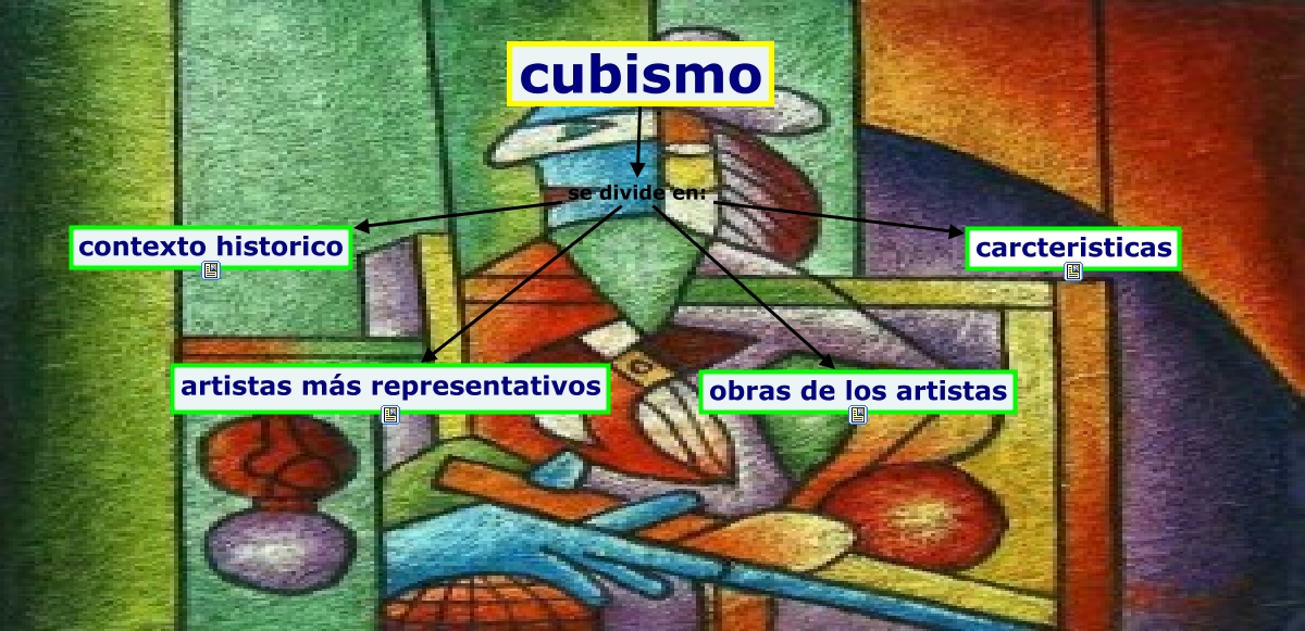 Este Cmap, tiene información relacionada con: cubismo thiare jj, cubismo se divide en: contexto historico, cubismo se divide en: obras de los artistas, cubismo se divide en: carcteristicas, cubismo se divide en: artistas más representativos