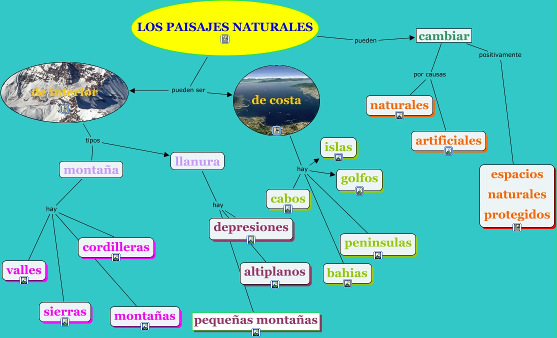 Este Cmap, tiene información relacionada con: los paisajes naturales, de costa hay islas, montaña hay sierras, cambiar positivamente espacios naturales protegidos, cambiar por causas naturales, llanura hay pequeñas montañas, cambiar por causas artificiales, llanura hay altiplanos, LOS PAISAJES NATURALES pueden cambiar, de costa hay cabos, montaña hay valles, de costa hay golfos, de costa hay bahias, de interior tipos montaña, LOS PAISAJES NATURALES pueden ser de interior, de interior tipos llanura, montaña hay montañas, LOS PAISAJES NATURALES pueden ser de costa, montaña hay cordilleras, llanura hay depresiones, de costa hay peninsulas