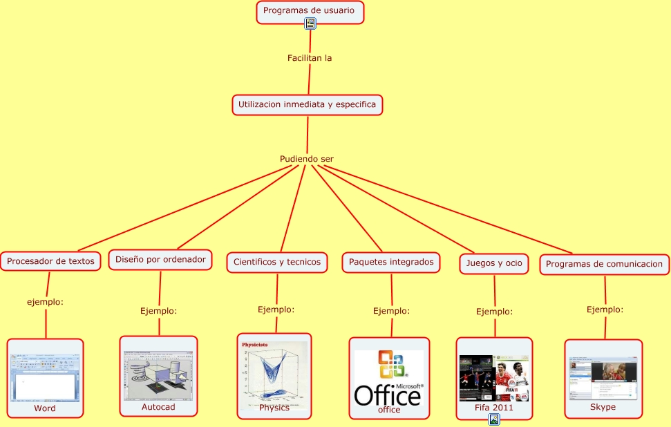 Este Cmap, tiene información relacionada con: Programas de usuario, Procesador de textos ejemplo: Word, Utilizacion inmediata y especifica Pudiendo ser Programas de comunicacion, Utilizacion inmediata y especifica Pudiendo ser Diseño por ordenador, Programas de usuario Facilitan la Utilizacion inmediata y especifica, Cientificos y tecnicos Ejemplo: Physics, Juegos y ocio Ejemplo: Fifa 2011, Utilizacion inmediata y especifica Pudiendo ser Paquetes integrados, Paquetes integrados Ejemplo: office, Diseño por ordenador Ejemplo: Autocad, Utilizacion inmediata y especifica Pudiendo ser Cientificos y tecnicos, Utilizacion inmediata y especifica Pudiendo ser Procesador de textos, Utilizacion inmediata y especifica Pudiendo ser Juegos y ocio, Programas de comunicacion Ejemplo: Skype