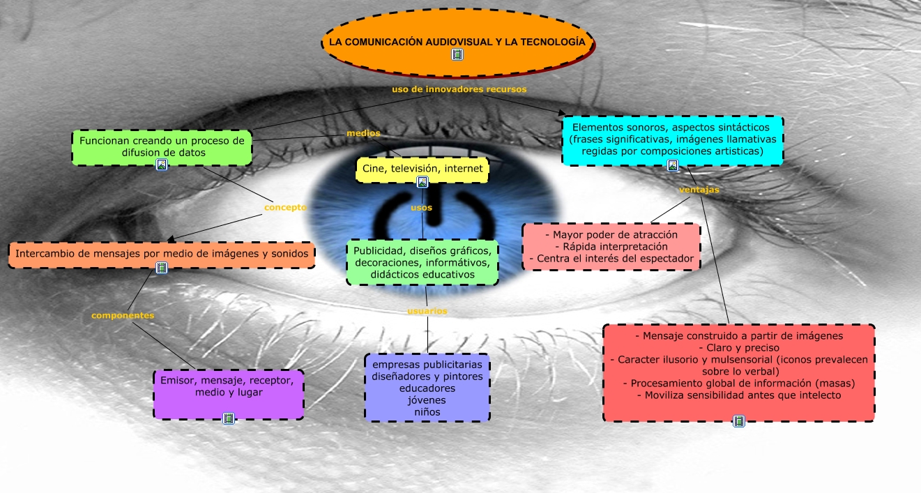 Este Cmap, tiene información relacionada con: cumunicacion audiovisual con video finalll, Elementos sonoros, aspectos sintácticos (frases significativas, imágenes llamativas regidas por composiciones artisticas) ventajas - Mayor poder de atracción - Rápida interpretación - Centra el interés del espectador, Cine, televisión, internet usos Publicidad, diseños gráficos, decoraciones, informátivos, didácticos educativos, Funcionan creando un proceso de difusion de datos medios Cine, televisión, internet, - Mensaje construido a partir de imágenes - Claro y preciso - Caracter ilusorio y mulsensorial (iconos prevalecen sobre lo verbal) - Procesamiento global de información (masas) - Moviliza sensibilidad antes que intelecto ventajas - Mayor poder de atracción - Rápida interpretación - Centra el interés del espectador, Publicidad, diseños gráficos, decoraciones, informátivos, didácticos educativos usuarios empresas publicitarias diseñadores y pintores educadores jóvenes niños, Funcionan creando un proceso de difusion de datos concepto Intercambio de mensajes por medio de imágenes y sonidos, Funcionan creando un proceso de difusion de datos uso de innovadores recursos Elementos sonoros, aspectos sintácticos (frases significativas, imágenes llamativas regidas por composiciones artisticas), Intercambio de mensajes por medio de imágenes y sonidos componentes Emisor, mensaje, receptor, medio y lugar