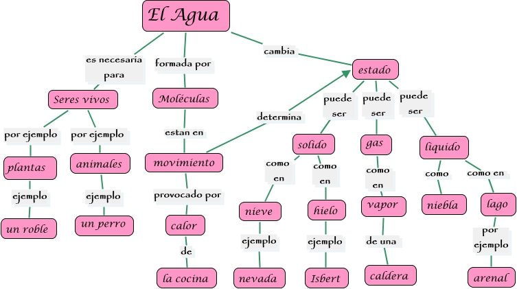 Este Cmap, tiene información relacionada con: Mapa Conceptual El agua.cmap, animales ejemplo un perro, liquido como niebla, liquido como en lago, solido como en nieve, Moléculas estan en movimiento, estado puede ser solido, Seres vivos por ejemplo animales, nieve ejemplo nevada, movimiento provocado por calor, solido como en hielo, plantas ejemplo un roble, El Agua cambia estado, Seres vivos por ejemplo plantas, lago por ejemplo arenal, El Agua formada por Moléculas, vapor de una caldera, El Agua es necesaria para Seres vivos, calor de la cocina, estado puede ser gas, movimiento determina estado