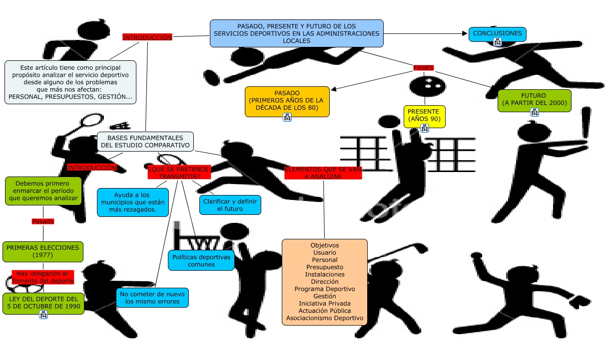 Este Cmap, tiene información relacionada con: MAPA GENERAL, BASES FUNDAMENTALES DEL ESTUDIO COMPARATIVO ELEMENTOS QUE SE VAN A ANALIZAR Objetivos Usuario Personal Presupuesto Instalaciones Dirección Programa Deportivo Gestión Iniciativa Privada Actuación Pública Asociacionismo Deportivo, BASES FUNDAMENTALES DEL ESTUDIO COMPARATIVO ¿QUÉ SE PRETENDE TRANSMITIR? Clarificar y definir el futuro, PASADO, PRESENTE Y FUTURO DE LOS SERVICIOS DEPORTIVOS EN LAS ADMINISTRACIONES LOCALES INTRODUCCIÓN Este artículo tiene como principal propósito analizar el servicio deportivo desde alguno de los problemas que más nos afectan: PERSONAL, PRESUPUESTOS, GESTIÓN..., BASES FUNDAMENTALES DEL ESTUDIO COMPARATIVO ¿QUÉ SE PRETENDE TRANSMITIR? Ayuda a los municipios que están más rezagados., BASES FUNDAMENTALES DEL ESTUDIO COMPARATIVO ¿QUÉ SE PRETENDE TRANSMITIR? No cometer de nuevo los mismo errores, PASADO, PRESENTE Y FUTURO DE LOS SERVICIOS DEPORTIVOS EN LAS ADMINISTRACIONES LOCALES FASES PASADO (PRIMEROS AÑOS DE LA DÉCADA DE LOS 80), PASADO, PRESENTE Y FUTURO DE LOS SERVICIOS DEPORTIVOS EN LAS ADMINISTRACIONES LOCALES ???? CONCLUSIONES, PASADO, PRESENTE Y FUTURO DE LOS SERVICIOS DEPORTIVOS EN LAS ADMINISTRACIONES LOCALES INTRODUCCIÓN BASES FUNDAMENTALES DEL ESTUDIO COMPARATIVO, Debemos primero enmarcar el período que queremos analizar Pasado PRIMERAS ELECCIONES (1977), PASADO, PRESENTE Y FUTURO DE LOS SERVICIOS DEPORTIVOS EN LAS ADMINISTRACIONES LOCALES FASES FUTURO (A PARTIR DEL 2000), BASES FUNDAMENTALES DEL ESTUDIO COMPARATIVO ¿QUÉ SE PRETENDE TRANSMITIR? Políticas deportivas comunes, PRIMERAS ELECCIONES (1977) Hay obligación al fomento del deporte LEY DEL DEPORTE DEL 5 DE OCTUBRE DE 1990, PASADO, PRESENTE Y FUTURO DE LOS SERVICIOS DEPORTIVOS EN LAS ADMINISTRACIONES LOCALES FASES PRESENTE (AÑOS 90), BASES FUNDAMENTALES DEL ESTUDIO COMPARATIVO INTRODUCCIÓN Debemos primero enmarcar el período que queremos analizar