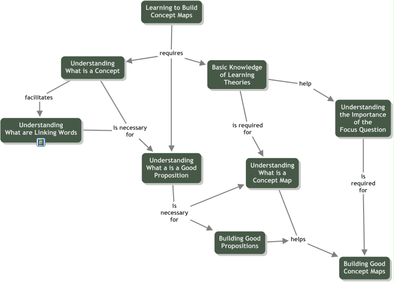 This Concept Map, created with IHMC CmapTools, has information related to: Learning To Build Concept Maps, Understanding What a is a Good Proposition is necessary for Building Good Propositions, Understanding What is a Concept is necessary for Understanding What a is a Good Proposition, Learning to Build Concept Maps requires Understanding What a is a Good Proposition, Understanding What is a Concept facilitates Understanding What are Linking Words, Building Good Propositions helps Building Good Concept Maps, Basic Knowledge of Learning Theories help Understanding the Importance of the Focus Question, Learning to Build Concept Maps requires Understanding What is a Concept, Basic Knowledge of Learning Theories is required for Understanding What is a Concept Map, Understanding the Importance of the Focus Question is required for Building Good Concept Maps, Understanding What a is a Good Proposition is necessary for Understanding What is a Concept Map, Understanding What is a Concept Map helps Building Good Concept Maps, Understanding What are Linking Words is necessary for Understanding What a is a Good Proposition, Learning to Build Concept Maps requires Basic Knowledge of Learning Theories