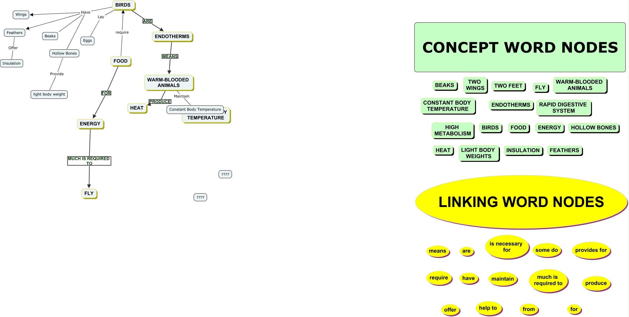 This Concept Map, created with IHMC CmapTools, has information related to: Birds Leg TWO2, ENDOTHERMS MEANS WARM-BLOODED ANIMALS, FOOD FOR ENERGY, WARM-BLOODED ANIMALS PRODUCE HEAT, BIRDS ARE ENDOTHERMS, BIRDS Have Feathers, BIRDS Have Hollow Bones, BIRDS Have Beaks, BIRDS Have Wings, ENERGY MUCH IS REQUIRED TO FLY, Hollow Bones Provide light body weight, Feathers Offer Insulation, WARM-BLOODED ANIMALS Maintain Constant Body Temperature, FOOD require BIRDS, BIRDS Lay Eggs