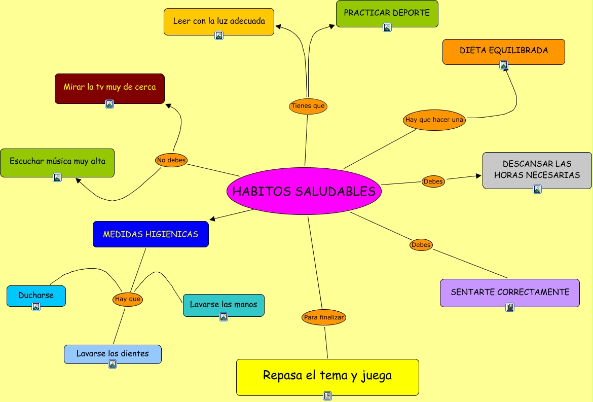 Este Cmap, tiene información relacionada con: habitos saludables, MEDIDAS HIGIENICAS Hay que Lavarse las manos, HABITOS SALUDABLES Debes DESCANSAR LAS HORAS NECESARIAS, HABITOS SALUDABLES Debes SENTARTE CORRECTAMENTE, HABITOS SALUDABLES No debes Mirar la tv muy de cerca, HABITOS SALUDABLES Tienes que Leer con la luz adecuada, HABITOS SALUDABLES Tienes que PRACTICAR DEPORTE, MEDIDAS HIGIENICAS Hay que Lavarse los dientes, HABITOS SALUDABLES Para finalizar Repasa el tema y juega, HABITOS SALUDABLES Hay que hacer una DIETA EQUILIBRADA, HABITOS SALUDABLES No debes Escuchar música muy alta, MEDIDAS HIGIENICAS Hay que Ducharse, HABITOS SALUDABLES ???? MEDIDAS HIGIENICAS