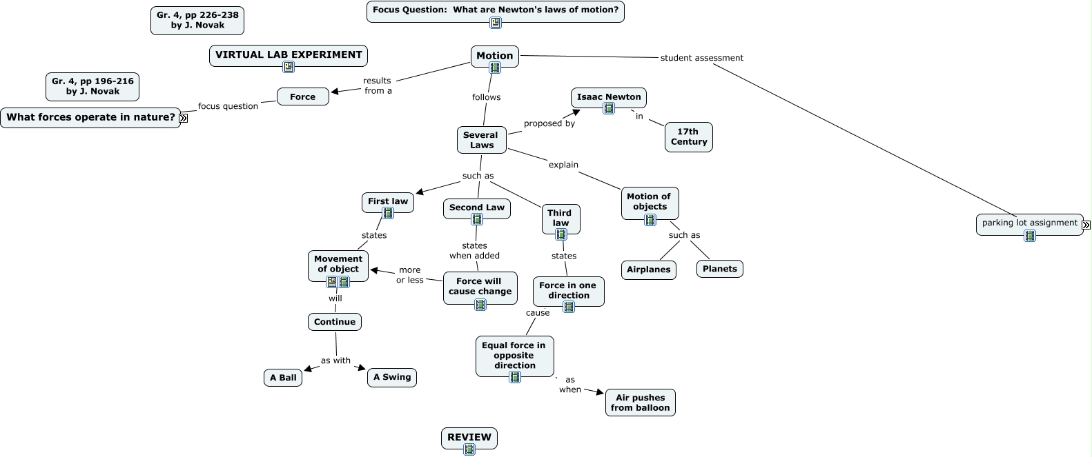 This Concept Map, created with IHMC CmapTools, has information related to: newton laws SCIENCE DEMO PROJECT.cmap, Several Laws such as Third law, Attraction between masses such as between Objects and Earth, Equal force in opposite direction as when Air pushes from balloon, Motion of objects such as Airplanes, Electric coils as in Motors, Motion results from a Force, Attraction between masses such as between Sun and Planets, Force focus question ????, Magnetic occur between magnets, Magnetic occur between North and South Poles, Force will cause change more or less Movement of object, Motion of objects such as Planets, Several Laws explain Motion of objects, Several Laws such as Second Law, Third law states Force in one direction, magnets attract Metal Objects, Several Laws such as First law, Motion student assessment Focus Question: What are Newton's laws of motion?, Nuclear are between nuclear Particles, Movement of object will Continue