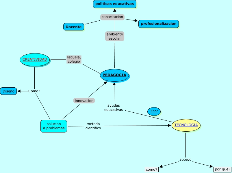 Este Cmap, tiene información relacionada con: arnulfo-g8, CREATIVIDAD Como? Diseño, CREATIVIDAD escuela, colegio PEDAGOGIA, solucion a problemas innovacion PEDAGOGIA, Docente capacitacion profesionalizacion, CREATIVIDAD Como? solucion a problemas, TECNOLOGIA accedo por que?, TECNOLOGIA accedo como?, solucion a problemas metodo cientifico TECNOLOGIA, PEDAGOGIA ambiente escolar politicas educativas, TECNOLOGIA ayudas educativas PEDAGOGIA