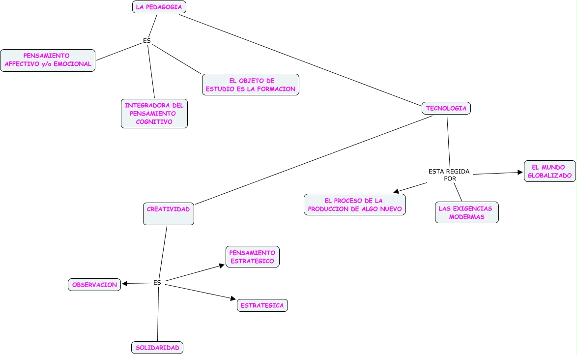 Este Cmap, tiene información relacionada con: cristinaBOGOTA8, LA PEDAGOGIA ES INTEGRADORA DEL PENSAMIENTO COGNITIVO, CREATIVIDAD ES SOLIDARIDAD, TECNOLOGIA ESTA REGIDA POR EL PROCESO DE LA PRODUCCION DE ALGO NUEVO, TECNOLOGIA ESTA REGIDA POR LAS EXIGENCIAS MODERMAS, LA PEDAGOGIA ES EL OBJETO DE ESTUDIO ES LA FORMACION, CREATIVIDAD ES PENSAMIENTO ESTRATEGICO, CREATIVIDAD ES ESTRATEGICA, CREATIVIDAD ES OBSERVACION, LA PEDAGOGIA CREATIVIDAD, LA PEDAGOGIA ES PENSAMIENTO AFFECTIVO y/o EMOCIONAL, TECNOLOGIA ESTA REGIDA POR EL MUNDO GLOBALIZADO