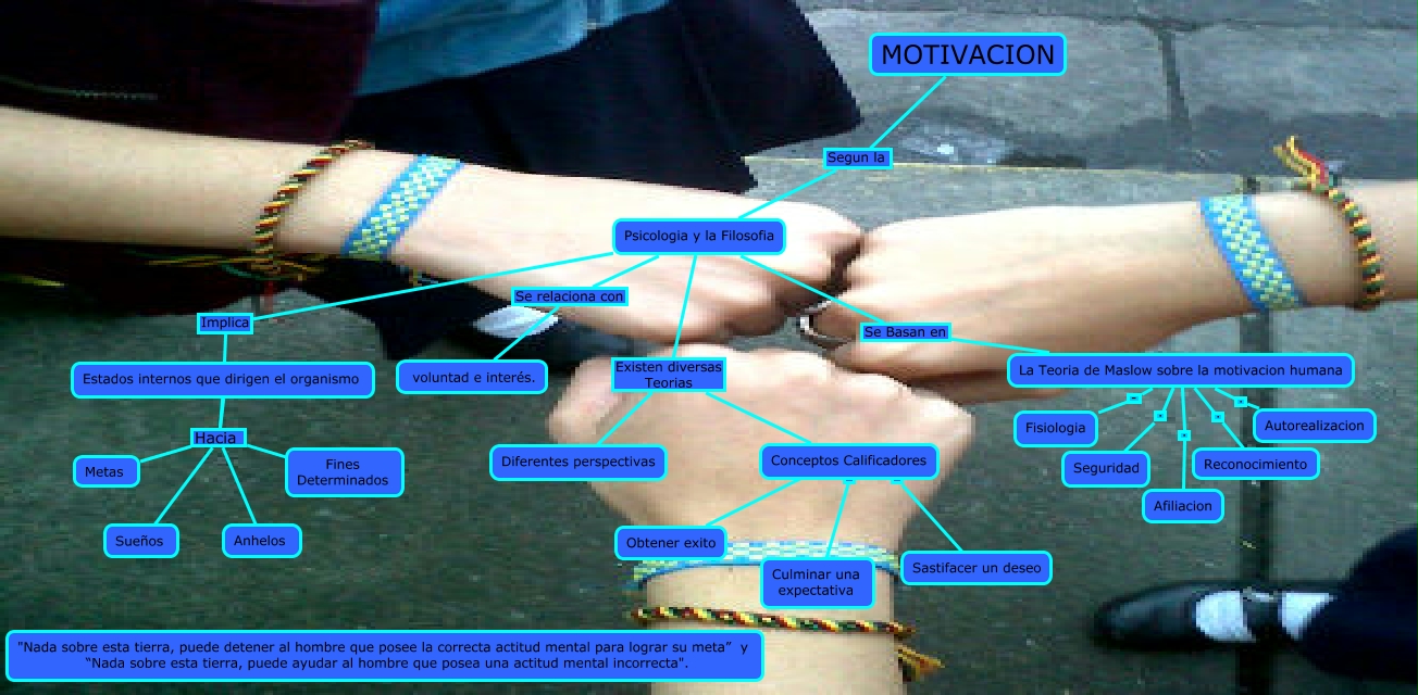Este Cmap, tiene información relacionada con: MotivacionIndividualMA, Estados internos que dirigen el organismo Hacia Anhelos, La Teoria de Maslow sobre la motivacion humana . Autorealizacion, Psicologia y la Filosofia Implica Estados internos que dirigen el organismo, Estados internos que dirigen el organismo Hacia Sueños, Conceptos Calificadores . Obtener exito, Conceptos Calificadores . Sastifacer un deseo, Estados internos que dirigen el organismo Hacia Fines Determinados, Psicologia y la Filosofia Se relaciona con voluntad e interés., Conceptos Calificadores . Culminar una expectativa, MOTIVACION Segun la Psicologia y la Filosofia, Psicologia y la Filosofia Se Basan en La Teoria de Maslow sobre la motivacion humana, Psicologia y la Filosofia Existen diversas Teorias Diferentes perspectivas, La Teoria de Maslow sobre la motivacion humana . Afiliacion, La Teoria de Maslow sobre la motivacion humana . Seguridad, La Teoria de Maslow sobre la motivacion humana - Fisiologia, La Teoria de Maslow sobre la motivacion humana . Reconocimiento, Psicologia y la Filosofia Existen diversas Teorias Conceptos Calificadores, Estados internos que dirigen el organismo Hacia Metas