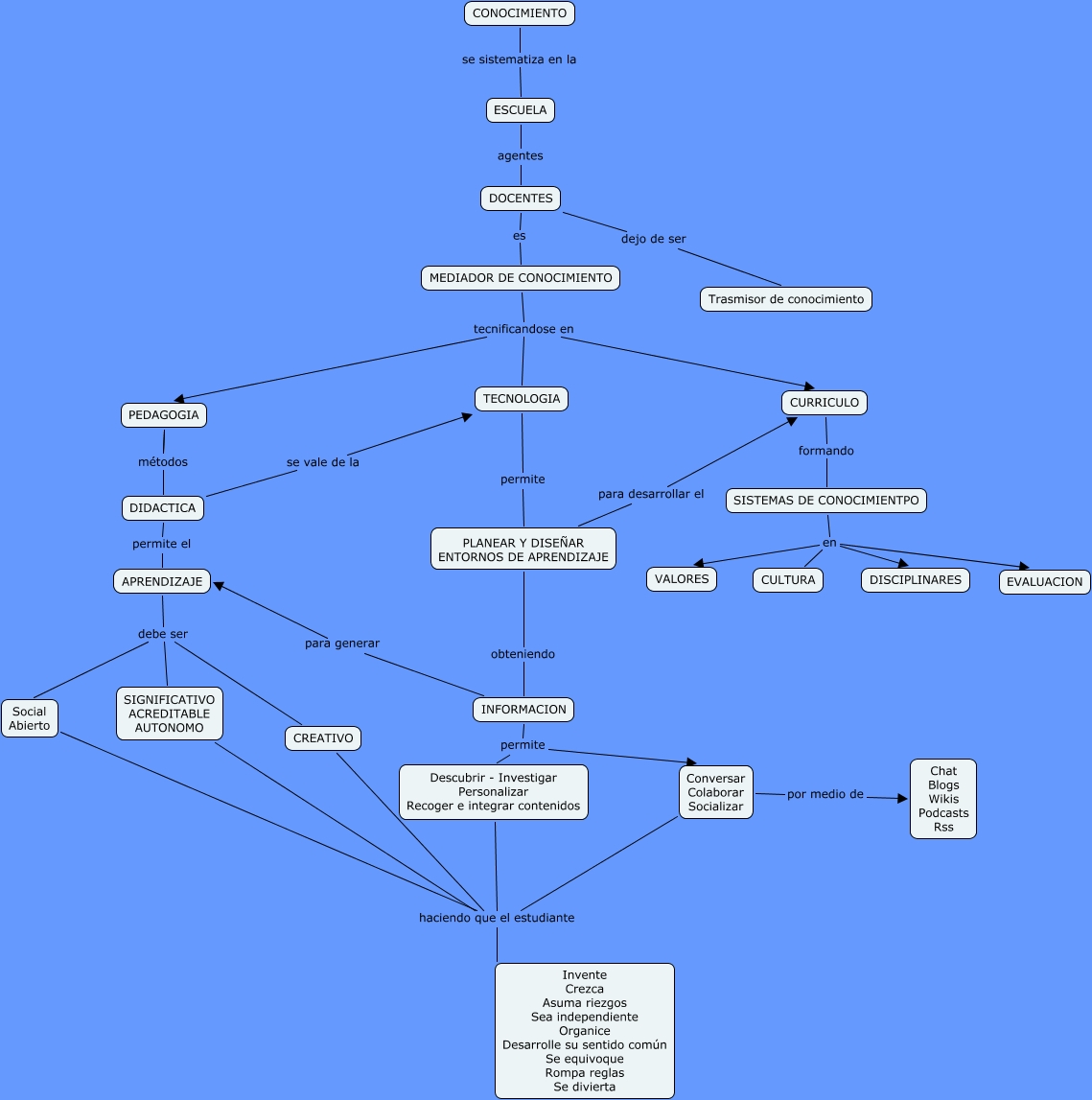 Este Cmap, tiene información relacionada con: Jim Henry Landinez_G8, CURRICULO formando SISTEMAS DE CONOCIMIENTPO, PLANEAR Y DISEÑAR ENTORNOS DE APRENDIZAJE obteniendo INFORMACION, CONOCIMIENTO se sistematiza en la ESCUELA, PLANEAR Y DISEÑAR ENTORNOS DE APRENDIZAJE para desarrollar el CURRICULO, PEDAGOGIA métodos DIDACTICA, INFORMACION permite Descubrir - Investigar Personalizar Recoger e integrar contenidos, APRENDIZAJE debe ser CREATIVO, Descubrir - Investigar Personalizar Recoger e integrar contenidos haciendo que el estudiante Invente Crezca Asuma riezgos Sea independiente Organice Desarrolle su sentido común Se equivoque Rompa reglas Se divierta, INFORMACION permite Conversar Colaborar Socializar, DIDACTICA permite el APRENDIZAJE, SISTEMAS DE CONOCIMIENTPO en CULTURA, DOCENTES es MEDIADOR DE CONOCIMIENTO, MEDIADOR DE CONOCIMIENTO tecnificandose en TECNOLOGIA, Conversar Colaborar Socializar por medio de Chat Blogs Wikis Podcasts Rss, SIGNIFICATIVO ACREDITABLE AUTONOMO haciendo que el estudiante Invente Crezca Asuma riezgos Sea independiente Organice Desarrolle su sentido común Se equivoque Rompa reglas Se divierta, APRENDIZAJE debe ser Social Abierto, DIDACTICA se vale de la TECNOLOGIA, MEDIADOR DE CONOCIMIENTO tecnificandose en PEDAGOGIA, APRENDIZAJE debe ser SIGNIFICATIVO ACREDITABLE AUTONOMO, PEDAGOGIA DIDACTICA