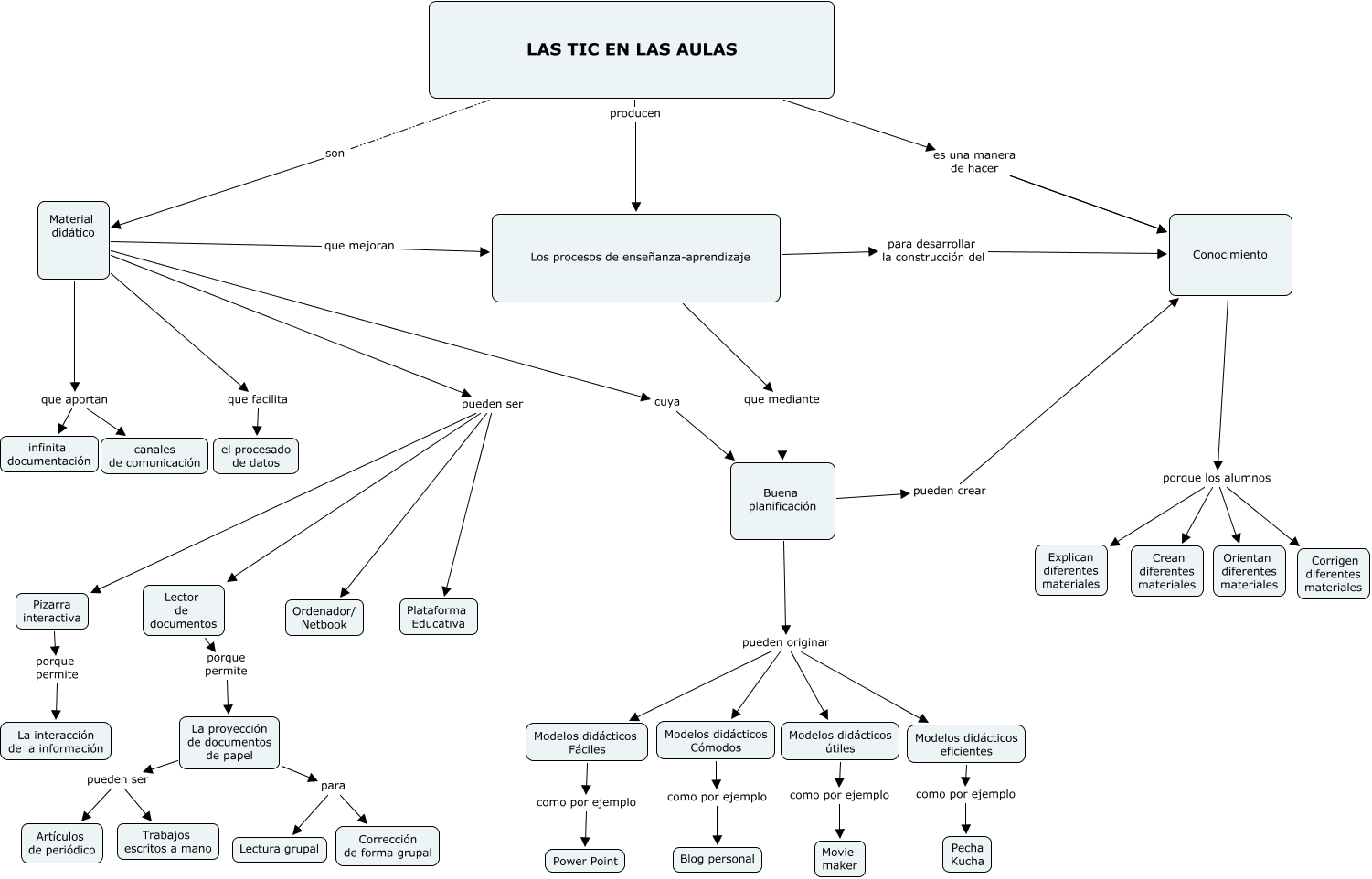 Este Cmap, tiene información relacionada con: Las tic en las aulas, LAS TIC EN LAS AULAS es una manera de hacer Conocimiento, Material didático cuya Buena planificación, LAS TIC EN LAS AULAS son Material didático, Pizarra interactiva porque permite La interacción de la información, Buena planificación pueden originar Modelos didácticos útiles, LAS TIC EN LAS AULAS es una manera de hacer Conocimiento, Material didático que aportan infinita documentación, Modelos didácticos Cómodos como por ejemplo Blog personal, Material didático que aportan canales de comunicación, La proyección de documentos de papel para Corrección de forma grupal, Los procesos de enseñanza-aprendizaje que mediante Buena planificación, Buena planificación pueden crear Conocimiento, Material didático pueden ser Pizarra interactiva, Buena planificación pueden originar Modelos didácticos eficientes, Buena planificación pueden originar Modelos didácticos Fáciles, Buena planificación pueden originar Modelos didácticos Cómodos, Conocimiento porque los alumnos Corrigen diferentes materiales, La proyección de documentos de papel pueden ser Trabajos escritos a mano, Material didático pueden ser Ordenador/ Netbook, La proyección de documentos de papel para Lectura grupal