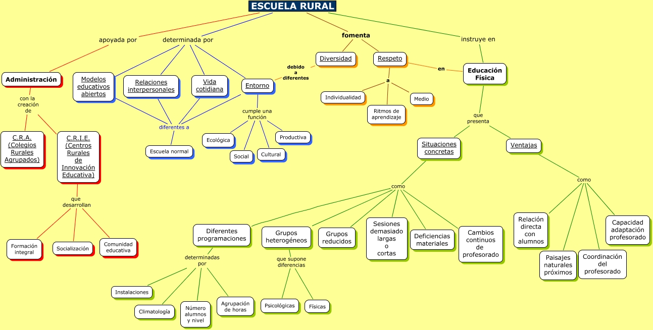 Este Cmap, tiene información relacionada con: ACHUTEGUI_PARDO_ALBERTO_CMAP_1 FJRA, Diferentes programaciones determinadas por Climatología, Entorno cumple una función Productiva, Ventajas como Coordinación del profesorado, Educación Física que presenta Ventajas, Educación Física que presenta Situaciones concretas, ESCUELA RURAL apoyada por Administración, Entorno cumple una función Ecológica, ESCUELA RURAL determinada por Vida cotidiana, Diferentes programaciones determinadas por Instalaciones, C.R.I.E. (Centros Rurales de Innovación Educativa) que desarrollan Comunidad educativa, Situaciones concretas como Deficiencias materiales, Entorno diferentes a Escuela normal, Situaciones concretas como Diferentes programaciones, Situaciones concretas como Sesiones demasiado largas o cortas, Administración con la creación de C.R.I.E. (Centros Rurales de Innovación Educativa), Relaciones interpersonales diferentes a Escuela normal, Diferentes programaciones determinadas por Agrupación de horas, Respeto en Educación Física, Ventajas como Relación directa con alumnos, Diversidad debido a diferentes Entorno