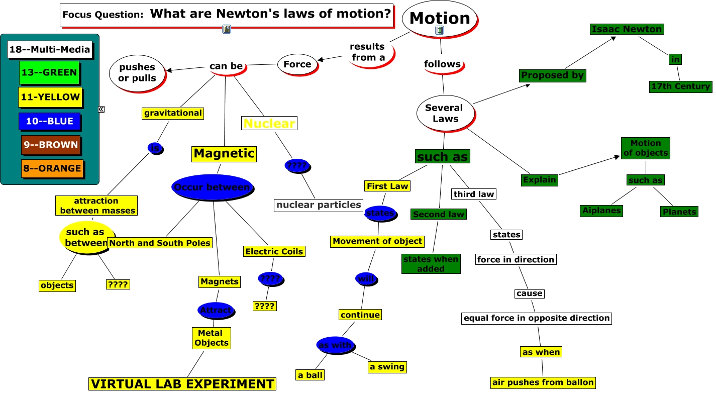 This Concept Map, created with IHMC CmapTools, has information related to: Copy (4) of spare map NEWTON LAWS samantha heiser, such as Second law, Metal Objects VIRTUAL LAB EXPERIMENT, such as Planets, attraction between masses such as between ????, force in direction cause, Magnetic Occur between Magnets, Magnetic Occur between Electric Coils, Movement of object will continue, Several Laws Explain, Force can be Nuclear, Motion results from a Force, Electric Coils ???? ????, equal force in opposite direction as when, Isaac Newton in, First Law states Movement of object, Several Laws such as, Several Laws Proposed by, Second law states when added, as when air pushes from ballon, Motion of objects such as