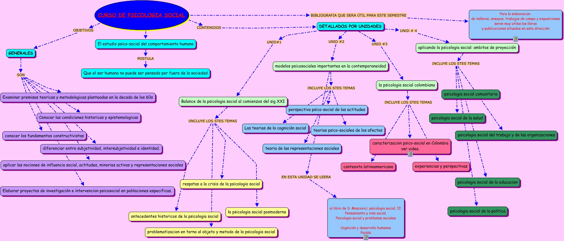 Este Cmap, tiene información relacionada con: clase de psicologia social por diana marcela molina galeano, la psicologia social colombiana INCLUYE LOS STES TEMAS caracterizacion psico-social en Colombia ver video., El estudio psico-social del comportamiento humano POSTULA Que el ser humano no puede ser pensado por fuera de la sociedad, DETALLADOS POR UNIDADES UNID #2 modelos psicosociales importantes en la contemporaneidad, CURSO DE PSICOLOGIA SOCIAL OBJETIVOS GENERALES, GENERALES SON Conocer las condiciones historicas y epistemologicas, DETALLADOS POR UNIDADES UNID#1 Balance de la psicologia social al comienzos del sig XXI, aplicando la psicologia social: ambitos de proyección INCLUYE LOS STES TEMAS psicologia social del trabajo y de las organizaciones, la psicologia social colombiana INCLUYE LOS STES TEMAS experiencias y perspectivas, CURSO DE PSICOLOGIA SOCIAL CONTENIDOS DETALLADOS POR UNIDADES, aplicando la psicologia social: ambitos de proyección INCLUYE LOS STES TEMAS psicologia social de la politica, la psicologia social colombiana INCLUYE LOS STES TEMAS contesxto latinoamericano, GENERALES SON diferenciar entre subjetividad, intersubjetividad e identidad., aplicando la psicologia social: ambitos de proyección INCLUYE LOS STES TEMAS psicologia social de la salud, GENERALES SON conocer los fundamentos constructivistas, aplicando la psicologia social: ambitos de proyección INCLUYE LOS STES TEMAS psicologia social de la educacion, GENERALES SON aplicar las nociones de influencia social, actitudes, minorias activas y representaciones sociales, modelos psicosociales importantes en la contemporaneidad INCLUYE LOS STES TEMAS teoria de las representaciones sociales, modelos psicosociales importantes en la contemporaneidad INCLUYE LOS STES TEMAS teorias psico-sociales de los afectos, CURSO DE PSICOLOGIA SOCIAL ES El estudio psico-social del comportamiento humano, GENERALES SON Elaborar proyectos de investigación e intervencion psicosocial en poblaciones especificas.
