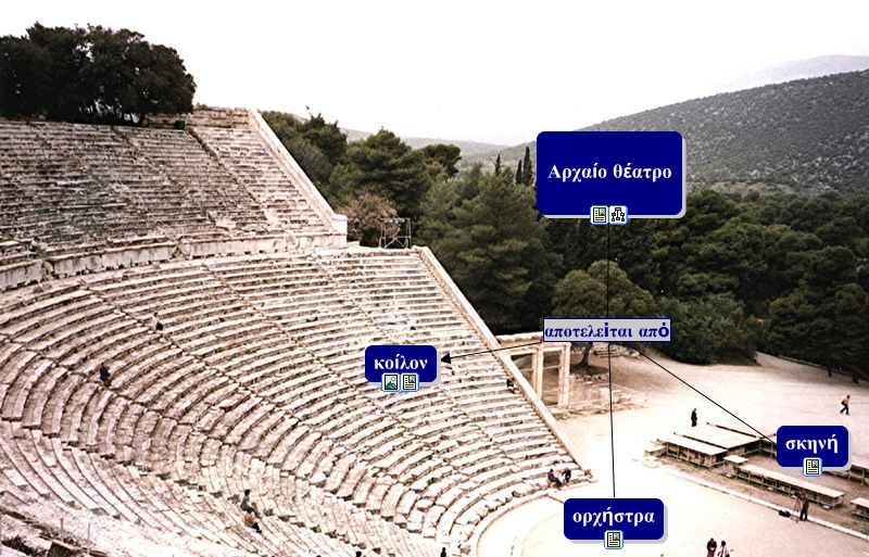 Αυτός ο εννοιολογικός χάρτης, που δημιουργήθηκε με το IHMC Cmap Tools, περιέχει πλήροφορίες που σχετίζονται με: Αρχιτεκτονική θεάτρου, Αρχαίο θέατρο αποτελείται από σκηνή, Αρχαίο θέατρο αποτελείται από ορχήστρα, Αρχαίο θέατρο αποτελείται από κοίλον