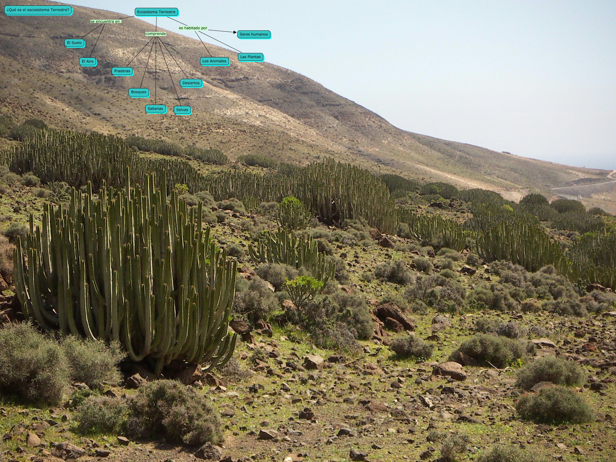 Este Cmap, tiene información relacionada con: Ecosistema Terrestre-, Ecosistema Terrestre es habitado por Seres humanos, Ecosistema Terrestre es habitado por Las Plantas, Ecosistema Terrestre comprende Praderas, Ecosistema Terrestre comprende Sabanas, Ecosistema Terrestre comprende Selvas, Ecosistema Terrestre comprende Bosques, Ecosistema Terrestre es habitado por Los Animales, Ecosistema Terrestre se encuentra en El Aire, Ecosistema Terrestre se encuentra en El Suelo, Ecosistema Terrestre comprende Desiertos