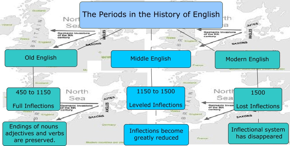 Este Cmap, tiene información relacionada con: english history-shrek, The Periods in the History of English Modern English, 1500 Lost Inflections Inflectional system has disappeared, Middle English ???? 1150 to 1500 Leveled Inflections, 450 to 1150 Full Inflections Endings of nouns adjectives and verbs are preserved., The Periods in the History of English Old English, Old English ???? 450 to 1150 Full Inflections, 1150 to 1500 Leveled Inflections Inflections become greatly reduced, Modern English ???? 1500 Lost Inflections, The Periods in the History of English Middle English