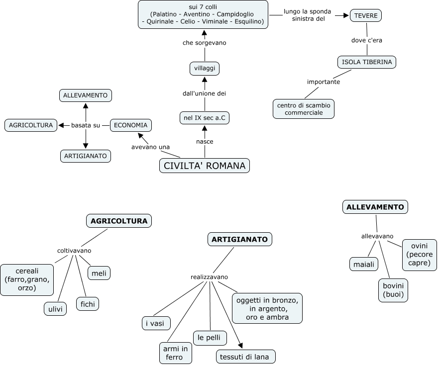 Questa Cmap, creata con IHMC CmapTools, contiene informazioni relative a: LA SOCIETA' ROMANA Matteo, ISOLA TIBERINA importante centro di scambio commerciale, villaggi che sorgevano sui 7 colli (Palatino - Aventino - Campidoglio - Quirinale - Celio - Viminale - Esquilino), AGRICOLTURA coltivavano ulivi, ARTIGIANATO realizzavano i vasi, ARTIGIANATO realizzavano oggetti in bronzo, in argento, oro e ambra, ARTIGIANATO realizzavano le pelli, TEVERE dove c'era ISOLA TIBERINA, AGRICOLTURA coltivavano cereali (farro,grano, orzo), ARTIGIANATO realizzavano armi in ferro, ECONOMIA basata su AGRICOLTURA, nel IX sec a.C dall'unione dei villaggi, AGRICOLTURA coltivavano fichi, ALLEVAMENTO allevavano ovini (pecore capre), AGRICOLTURA coltivavano meli, ECONOMIA basata su ALLEVAMENTO, ECONOMIA basata su ARTIGIANATO, ALLEVAMENTO allevavano maiali, CIVILTA' ROMANA avevano una ECONOMIA, CIVILTA' ROMANA nasce nel IX sec a.C, ALLEVAMENTO allevavano bovini (buoi)