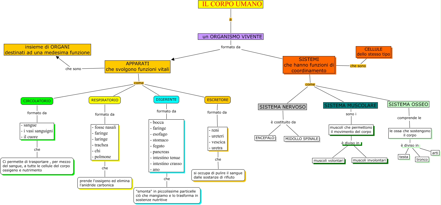 Questa Cmap, creata con IHMC CmapTools, contiene informazioni relative a: mappacorpoumano, - bocca - faringe - esofago - stomaco - fegato - pancreas - intestino tenue - intestino crasso - ano che "smonta" in piccolissime particelle ciò che mangiamo e lo trasforma in sostenze nutritive, - sangue - i vasi sanguigni - il cuore che Ci permette di trasportare , per mezzo del sangue, a tutte le cellule del corpo ossigeno e nutrimento, APPARATI che svolgono funzioni vitali come ESCRETORE, un ORGANISMO VIVENTE formato da SISTEMI che hanno funzioni di coordinamento, SISTEMA NERVOSO è costituito da ENCEFALO, CIRCOLATORIO formato da - sangue - i vasi sanguigni - il cuore, le ossa che sostengono il corpo è diviso in testa, muscoli che permettono il movimento del corpo è diviso in muscoli involontari, un ORGANISMO VIVENTE formato da APPARATI che svolgono funzioni vitali, SISTEMI che hanno funzioni di coordinamento come SISTEMA MUSCOLARE, SISTEMA MUSCOLARE sono i muscoli che permettono il movimento del corpo, APPARATI che svolgono funzioni vitali come RESPIRATORIO, le ossa che sostengono il corpo è diviso in tronco, SISTEMI che hanno funzioni di coordinamento come SISTEMA OSSEO, APPARATI che svolgono funzioni vitali come CIRCOLATORIO, DIGERENTE formato da - bocca - faringe - esofago - stomaco - fegato - pancreas - intestino tenue - intestino crasso - ano, RESPIRATORIO formato da - fosse nasali - faringe - laringe - trachea - chi - polmone, - fosse nasali - faringe - laringe - trachea - chi - polmone che prende l'ossigeno ed elimina l'anidride carbonica, IL CORPO UMANO è un ORGANISMO VIVENTE, ESCRETORE formato da - reni - ureteri - vescica - uretra