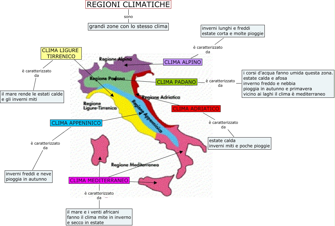 Questa Cmap, creata con IHMC CmapTools, contiene informazioni relative a: regioni climatiche cartina - matteo, CLIMA PADANO ????, REGIONI CLIMATICHE sono grandi zone con lo stesso clima, CLIMA APPENINICO è caratterizzato da inverni freddi e neve pioggia in autunno, CLIMA MEDITERRANEO ????, CLIMA PADANO è caratterizzato da i corsi d'acqua fanno umida questa zona. estate calda e afosa inverno freddo e nebbia pioggia in autunno e primavera vicino ai laghi il clima è mediterraneo, CLIMA APPENINICO ????, CLIMA ALPINO ????, CLIMA MEDITERRANEO ????, CLIMA LIGURE TIRRENICO, CLIMA ADRIATICO è caratterizzato da estate calda inverni miti e poche pioggie, CLIMA ALPINO è caratterizzato da inverni lunghi e freddi estate corta e molte pioggie, CLIMA MEDITERRANEO è caratterizzato da il mare e i venti africani fanno il clima mite in inverno e secco in estate, CLIMA LIGURE TIRRENICO è caratterizzato da il mare rende le estati calde e gli inverni miti, CLIMA ADRIATICO ????, CLIMA MEDITERRANEO ????