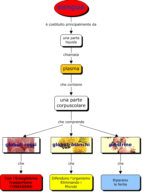 Questa Cmap, creata con IHMC CmapTools, contiene informazioni relative a: Sangue, una parte corpuscolare che comprende piastrine, una parte corpuscolare che comprende globuli bianchi, sangue è costituito principalmente da una parte liquida, globuli bianchi che Difendono l'organismo Eliminando i Microbi, una parte corpuscolare che comprende globuli rossi, una parte liquida chiamata plasma, plasma che contiene una parte corpuscolare, globuli rossi che Con l'Emoglobina Trasportano l'OSSIGENO, piastrine che Riparano le ferite