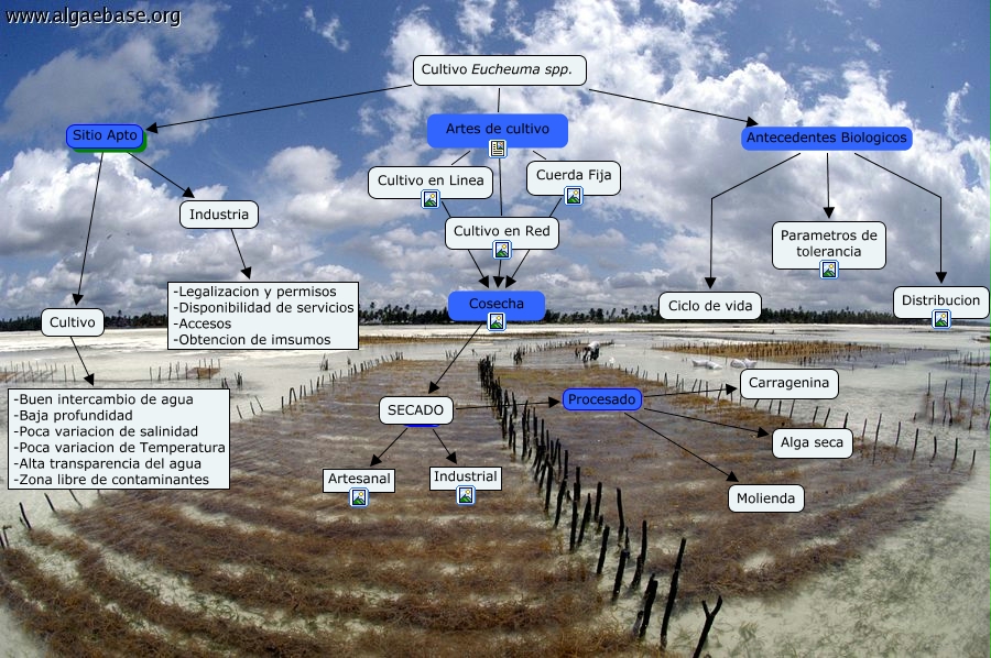 Este Cmap, tiene información relacionada con: Cultiivo Eucheuma, Industria ???? -Legalizacion y permisos -Disponibilidad de servicios -Accesos -Obtencion de imsumos, Cuerda Fija Cosecha SECADO, SECADO Procesado Molienda, Cultivo en Linea Cosecha SECADO, Cultivo Eucheuma spp. Antecedentes Biologicos Distribucion, Cultivo Eucheuma spp. Antecedentes Biologicos Ciclo de vida, SECADO Procesado Carragenina, Cultivo en Red Cosecha SECADO, Cultivo Eucheuma spp. Sitio Apto Cultivo, Cultivo Eucheuma spp. Sitio Apto Industria, Cultivo Eucheuma spp. Artes de cultivo Cuerda Fija, Cultivo Eucheuma spp. Artes de cultivo Cultivo en Linea, Cultivo Eucheuma spp. Artes de cultivo Cultivo en Red, Cultivo ???? -Buen intercambio de agua -Baja profundidad -Poca variacion de salinidad -Poca variacion de Temperatura -Alta transparencia del agua -Zona libre de contaminantes, Cultivo Eucheuma spp. Antecedentes Biologicos Parametros de tolerancia, SECADO Procesado Alga seca