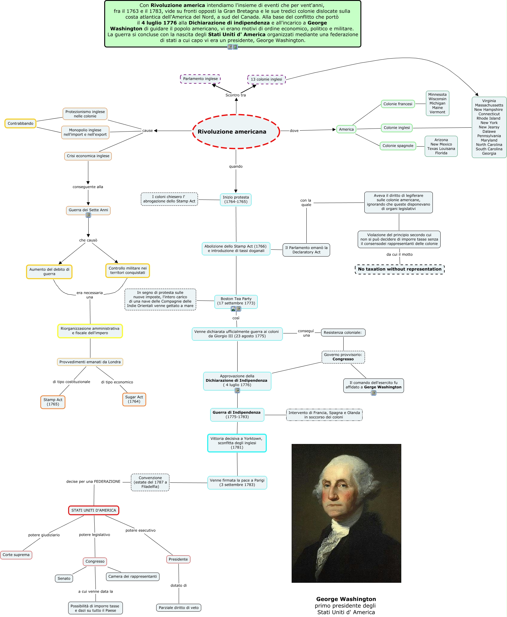 Questa Cmap, creata con IHMC CmapTools, contiene informazioni relative a: Rivoluzione americana, Violazione del principio secondo cui non si può decidere di imporre tasse senza il consensodei rappresentanti delle colonie da cui il motto No taxation without representation, STATI UNITI D'AMERICA potere giudiziario Corte suprema, Inizio protesta (1764-1765) I coloni chiesero l' abrogazione dello Stamp Act, STATI UNITI D'AMERICA potere legislativo Congresso, Guerra dei Sette Anni che causò Controllo militare nei territori conquistati, Rivoluzione americana quando Inizio protesta (1764-1765), America Colonie spagnole, Rivoluzione americana Scontro tra 13 colonie inglesi, Contrabbando Monopolio inglese nell'import e nell'export, Resistenza coloniale: Governo provvisorio: Congresso, Colonie francesi Minnesota Wisconsin Michigan Maine Vermont, Guerra di Indipendenza (1775-1783) Vittoria decisiva a Yorktown, sconfitta degli inglesi (1781), Convenzione (estate del 1787 a Filadelfia) decise per una FEDERAZIONE STATI UNITI D'AMERICA, America Colonie inglesi, Rivoluzione americana cause Monopolio inglese nell'import e nell'export, Congresso Senato, Rivoluzione americana cause Protezionismo inglese nelle colonie, Guerra di Indipendenza (1775-1783) Intervento di Francia, Spagna e Olanda in soccorso dei coloni, Inizio protesta (1764-1765) Abolizione dello Stamp Act (1766) e introduzione di tassi doganali, Vittoria decisiva a Yorktown, sconfitta degli inglesi (1781) Venne firmata la pace a Parigi (3 settembre 1783)