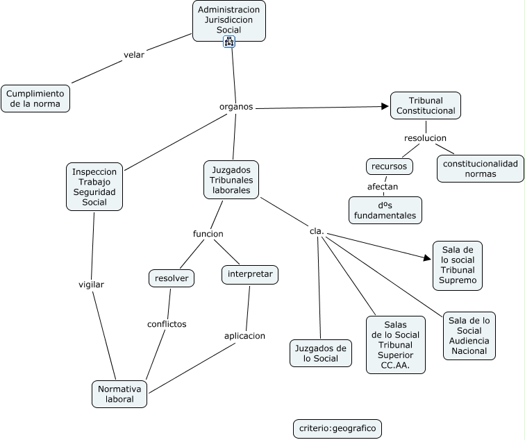 Este Cmap, tiene información relacionada con: Adm JUrisdiccional Social, interpretar aplicacion Normativa laboral, Administracion Jurisdiccion Social organos Tribunal Constitucional, Juzgados Tribunales laborales cla. Sala de lo social Tribunal Supremo, Inspeccion Trabajo Seguridad Social vigilar Normativa laboral, Administracion Jurisdiccion Social velar Cumplimiento de la norma, resolver conflictos Normativa laboral, Tribunal Constitucional resolucion recursos, Juzgados Tribunales laborales funcion resolver, Administracion Jurisdiccion Social organos Juzgados Tribunales laborales, Juzgados Tribunales laborales cla. Sala de lo Social Audiencia Nacional, Administracion Jurisdiccion Social organos Inspeccion Trabajo Seguridad Social, recursos afectan dºs fundamentales, Juzgados Tribunales laborales funcion interpretar, Tribunal Constitucional resolucion constitucionalidad normas, Juzgados Tribunales laborales cla. Salas de lo Social Tribunal Superior CC.AA., Juzgados Tribunales laborales cla. Juzgados de lo Social