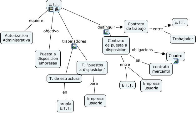 Este Cmap, tiene información relacionada con: Tema 2 Contrato de Trabajo ETT, E.T.T. objetivo Puesta a disposicion empresas, Contrato de puesta a disposicion entre Empresa usuaria, T. "puestos a disposicion" para Empresa usuaria, Contrato de trabajo entre Trabajador, Contrato de puesta a disposicion entre E.T.T., T. de estructura en propia E.T.T., E.T.T. distinguir Contrato de trabajo, E.T.T. trabajadores T. de estructura, Contrato de puesta a disposicion obligacions Cuadro, E.T.T. distinguir Contrato de puesta a disposicion, E.T.T. requiere Autorizacion Administrativa, Contrato de trabajo entre E.T.T., E.T.T. trabajadores T. "puestos a disposicion", Contrato de puesta a disposicion es contrato mercantil