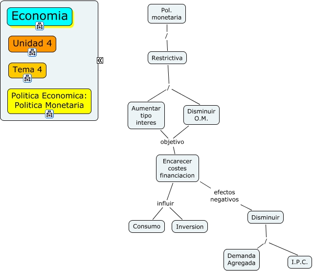 Este Cmap, tiene información relacionada con: Unidad 4 Tema 4 Politica Monetaria Restrictiva, Disminuir O.M. objetivo Encarecer costes financiacion, Disminuir / I.P.C., Encarecer costes financiacion influir Inversion, Encarecer costes financiacion influir Consumo, Aumentar tipo interes objetivo Encarecer costes financiacion, Restrictiva / Aumentar tipo interes, Pol. monetaria / Restrictiva, Encarecer costes financiacion efectos negativos Disminuir, Restrictiva / Disminuir O.M., Disminuir / Demanda Agregada