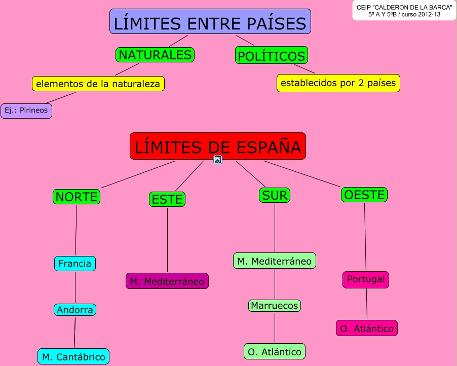 Este Cmap, tiene información relacionada con: LÍMITES DE ESPAÑA, LÍMITES ENTRE PAÍSES POLÍTICOS establecidos por 2 países, M. Mediterráneo Marruecos O. Atlántico, Francia Andorra M. Cantábrico, LÍMITES DE ESPAÑA NORTE Francia, LÍMITES DE ESPAÑA OESTE O. Atlántico, LÍMITES DE ESPAÑA ESTE M. Mediterráneo, elementos de la naturaleza ???? Ej.: Pirineos, LÍMITES ENTRE PAÍSES NATURALES elementos de la naturaleza, LÍMITES DE ESPAÑA SUR M. Mediterráneo