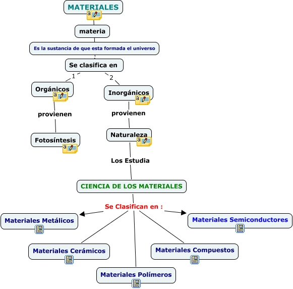 Este Cmap, tiene información relacionada con: Ciencia DeLosMateriales, CIENCIA DE LOS MATERIALES Se Clasifican en : Materiales Polímeros, CIENCIA DE LOS MATERIALES Se Clasifican en : Materiales Metálicos, Orgánicos provienen Fotosíntesis, Se clasifica en 2 Inorgánicos, Se clasifica en 1 Orgánicos, Naturaleza Los Estudia CIENCIA DE LOS MATERIALES, CIENCIA DE LOS MATERIALES Se Clasifican en : Materiales Cerámicos, CIENCIA DE LOS MATERIALES Se Clasifican en : Materiales Semiconductores, MATERIALES Se clasifica en, Inorgánicos provienen Naturaleza, CIENCIA DE LOS MATERIALES Se Clasifican en : Materiales Compuestos, MATERIALES Es la sustancia de que esta formada el universo