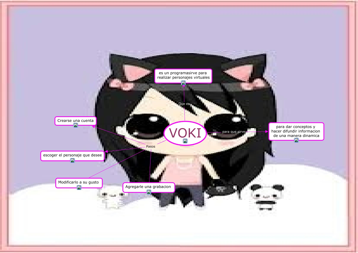 Este Cmap, tiene información relacionada con: voki, VOKI Pasos Agregarle una grabacion, VOKI Pasos Crearse una cuenta, VOKI Pasos escoger el personaje que desee, VOKI Pasos Modificarlo a su gusto, VOKI Que es es un programasirve para realizar personajes virtuales, VOKI para que sirve para dar conceptos y hacer difundir informacion de una manera dinamica