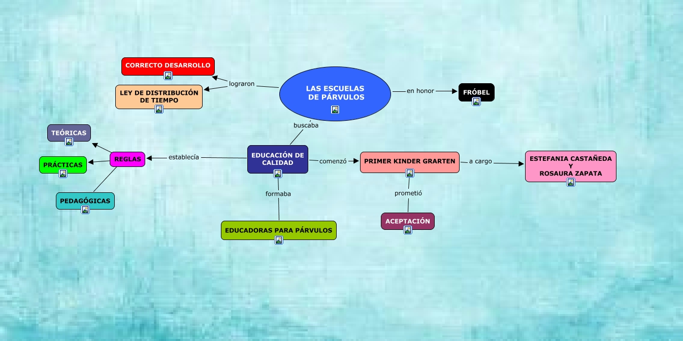 Este Cmap, tiene información relacionada con: HADMA-I-13, EDUCACIÓN DE CALIDAD comenzó PRIMER KINDER GRARTEN, EDUCACIÓN DE CALIDAD establecía REGLAS, PRIMER KINDER GRARTEN prometió ACEPTACIÓN, LAS ESCUELAS DE PÁRVULOS lograron CORRECTO DESARROLLO, LAS ESCUELAS DE PÁRVULOS lograron LEY DE DISTRIBUCIÓN DE TIEMPO, LAS ESCUELAS DE PÁRVULOS buscaba EDUCACIÓN DE CALIDAD, REGLAS ???? TEÓRICAS, REGLAS ???? PRÁCTICAS, REGLAS ???? PEDAGÓGICAS, EDUCACIÓN DE CALIDAD formaba EDUCADORAS PARA PÁRVULOS, PRIMER KINDER GRARTEN a cargo ESTEFANIA CASTAÑEDA Y ROSAURA ZAPATA, LAS ESCUELAS DE PÁRVULOS en honor FRÓBEL