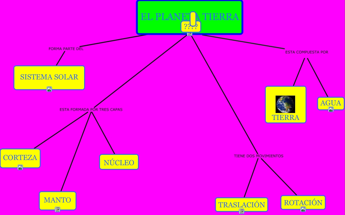 Aquest mapa conceptual conté informació relacionada amb: EL PLANETA TIERRA, TIERRA ESTA COMPUESTA POR EL PLANETA TIERRA, SISTEMA SOLAR FORMA PARTE DEL ????, NÚCLEO ESTA FORMADA POR TRES CAPAS EL PLANETA TIERRA, MANTO ESTA FORMADA POR TRES CAPAS EL PLANETA TIERRA, CORTEZA ESTA FORMADA POR TRES CAPAS EL PLANETA TIERRA, TRASLACIÓN TIENE DOS MOVIMIENTOS ROTACIÓN, AGUA ESTA COMPUESTA POR EL PLANETA TIERRA, TRASLACIÓN TIENE DOS MOVIMIENTOS EL PLANETA TIERRA