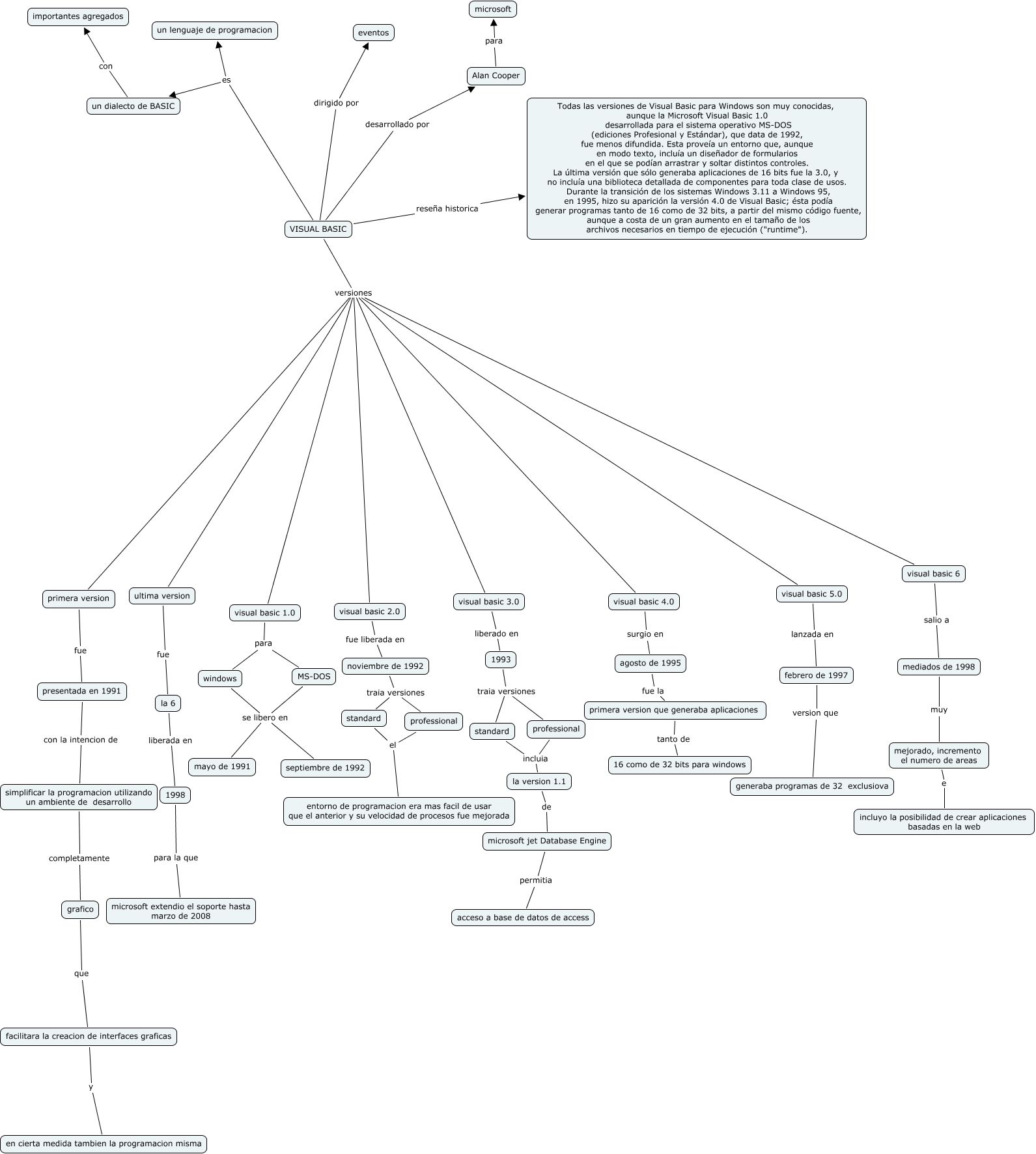 Este Cmap, tiene información relacionada con: SALA_1_PC12_095, 1993 traia versiones professional, VISUAL BASIC versiones visual basic 6, VISUAL BASIC versiones visual basic 2.0, mediados de 1998 muy mejorado, incremento el numero de areas, agosto de 1995 fue la primera version que generaba aplicaciones, Alan Cooper para microsoft, facilitara la creacion de interfaces graficas y en cierta medida tambien la programacion misma, la 6 liberada en 1998, visual basic 5.0 lanzada en febrero de 1997, visual basic 3.0 liberado en 1993, primera version fue presentada en 1991, standard incluia la version 1.1, visual basic 1.0 para windows, la version 1.1 de microsoft jet Database Engine, visual basic 1.0 para MS-DOS, 1998 para la que microsoft extendio el soporte hasta marzo de 2008, primera version que generaba aplicaciones tanto de 16 como de 32 bits para windows, visual basic 6 salio a mediados de 1998, windows se libero en mayo de 1991, professional el entorno de programacion era mas facil de usar que el anterior y su velocidad de procesos fue mejorada