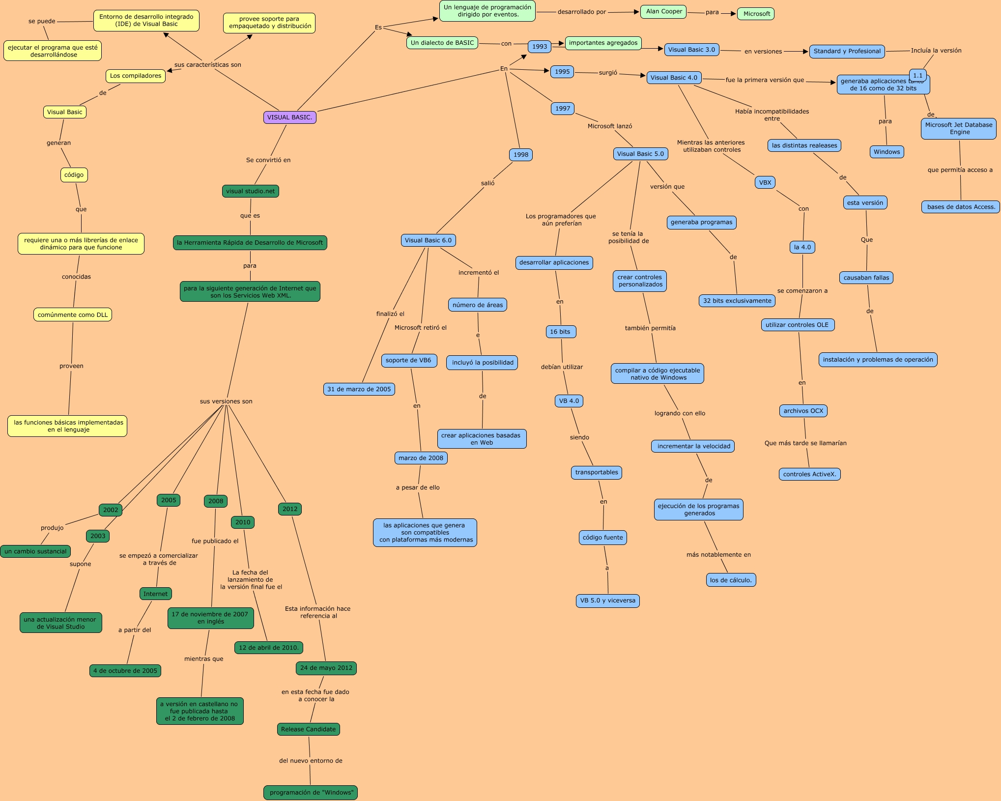Este Cmap, tiene información relacionada con: SALA_1_PC22_mapa, VISUAL BASIC. sus características son provee soporte para empaquetado y distribución, VISUAL BASIC. En 1995, número de áreas e incluyó la posibilidad, Los compiladores de Visual Basic, para la siguiente generación de Internet que son los Servicios Web XML. sus versiones son 2008, VISUAL BASIC. Es Un dialecto de BASIC, para la siguiente generación de Internet que son los Servicios Web XML. sus versiones son 2003, incluyó la posibilidad de crear aplicaciones basadas en Web, Visual Basic 4.0 Mientras las anteriores utilizaban controles VBX, requiere una o más librerías de enlace dinámico para que funcione conocidas comúnmente como DLL, comúnmente como DLL proveen las funciones básicas implementadas en el lenguaje, Visual Basic generan código, Un dialecto de BASIC con importantes agregados, VB 4.0 siendo transportables, 2003 supone una actualización menor de Visual Studio, Visual Basic 3.0 en versiones Standard y Profesional, código fuente a VB 5.0 y viceversa, para la siguiente generación de Internet que son los Servicios Web XML. sus versiones son 2010, Un lenguaje de programación dirigido por eventos. desarrollado por Alan Cooper, Visual Basic 5.0 Los programadores que aún preferían desarrollar aplicaciones