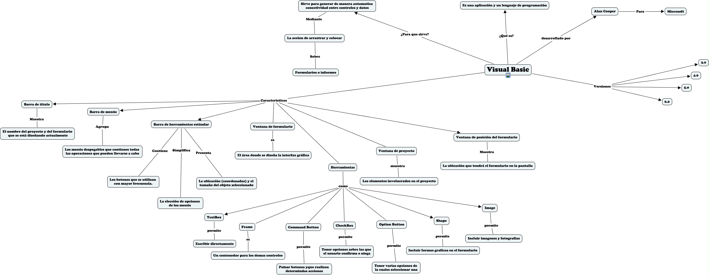 Este Cmap, tiene información relacionada con: SALA_1_PC10_Visual Basic, Visual Basic Caracteristicas Ventana de posición del formulario, Visual Basic Versiones 3.0, Ventana de posición del formulario Muestra La ubicación que tendrá el formulario en la pantalla, Herramientas como Option Button, Sirve para generar de manera automatica conectividad entre controles y datos Mediante La accion de arrastrar y colocar, Visual Basic desarrollado por Alan Cooper, Visual Basic Caracteristicas Barra de menús, Barra de menús Agrupa Los menús despegables que contienes todas las operaciones que pueden llevarse a cabo, La accion de arrastrar y colocar Sobre Formularios o informes, Visual Basic Versiones 5.0, Command Button permite Pulsar botones yque realizen determindas acciones, Barra de herramientas estándar Simplifica La elección de opciones de los menús, Herramientas como Frame, Image permite Incluir imagenes y fotografias, Herramientas como Command Button, Ventana de formulario es El área donde se diseña la interfaz gráfica, Barra de herramientas estándar Presenta La ubicación (coordenadas) y el tamaño del objeto seleccionado, CheckBox permite Tener opciones sobre las que el usuario confirma o niega, Herramientas como Shape, Option Button permite Tener varias opciones de la cuales seleccionar una