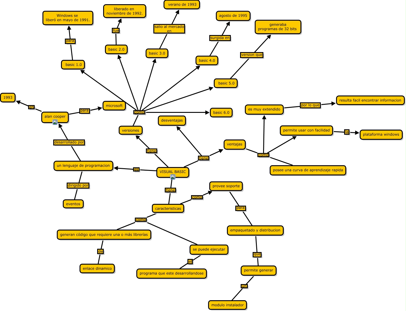 Este Cmap, tiene información relacionada con: SALA_1_PC19_095apa tercer periodo, basic 3.0 salio al mercado en verano de 1993, empaquetado y distribucion que permite generar, permite generar un modulo instalador, caracteristicas como generan código que requiere una o más librerías, VISUAL BASIC tiene versiones, alan cooper en 1993, VISUAL BASIC tiene desventajas, basic 1.0 para Windows se liberó en mayo de 1991., provee soporte para empaquetado y distribucion, caracteristicas como provee soporte, versiones como basic 3.0, basic 2.0 fue liberado en noviembre de 1992., es muy extendido por lo que resulta facil encontrar informacion, basic 5.0 version que generaba programas de 32 bits, VISUAL BASIC es un lenguaje de programacion, versiones como basic 2.0, versiones como basic 5.0, un lenguaje de programacion desarrollado por alan cooper, VISUAL BASIC tiene caracteristicas, versiones como basic 4.0