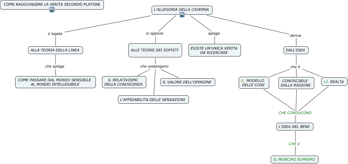 Questa Cmap, creata con IHMC CmapTools, contiene informazioni relative a: PLATONE, L'IDEA DEL BENE CHE è IL PRINCIPO SUPREMO, L'ALLEGORIA DELLA CAVERNA si oppone ALLE TEORIE DEI SOFISTI, L'ALLEGORIA DELLA CAVERNA è legata ALLA TEORIA DELLA LINEA, LA REALTà CHE CONDUCONO L'IDEA DEL BENE, DALL'IDEA che è IL MODELLO DELLE COSE, ALLA TEORIA DELLA LINEA che spiega COME PASSARE DAL MONDO SENSIBILE AL MONDO INTELLEGIBILE, L'ALLEGORIA DELLA CAVERNA spiega ESISTE UN'UNICA VERITà DA RICERCARE, ALLE TEORIE DEI SOFISTI che sostengono L'AFFIDABILITà DELLE SENSAZIONI, DALL'IDEA che è LA REALTà, ALLE TEORIE DEI SOFISTI che sostengono IL VALORE DELL'OPINIONE, IL MODELLO DELLE COSE CHE CONDUCONO L'IDEA DEL BENE, L'ALLEGORIA DELLA CAVERNA deriva DALL'IDEA, CONOSCIBILE DALLA RAGIONE CHE CONDUCONO L'IDEA DEL BENE, ALLE TEORIE DEI SOFISTI che sostengono IL RELATIVISMO DELLA CONOSCENZA, DALL'IDEA che è CONOSCIBILE DALLA RAGIONE