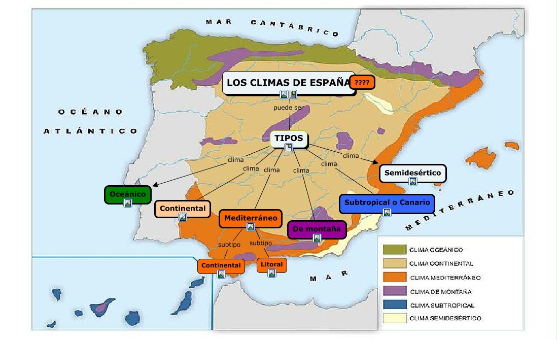 Este Cmap, tiene información relacionada con: Los climas de España- Sandra Arellano, TIPOS clima Subtropical o Canario, TIPOS clima Continental, Mediterráneo subtipo Litoral, TIPOS clima Semidesértico, Mediterráneo subtipo Continental, TIPOS clima De montaña, TIPOS clima Oceánico, LOS CLIMAS DE ESPAÑA puede ser TIPOS, TIPOS clima Mediterráneo