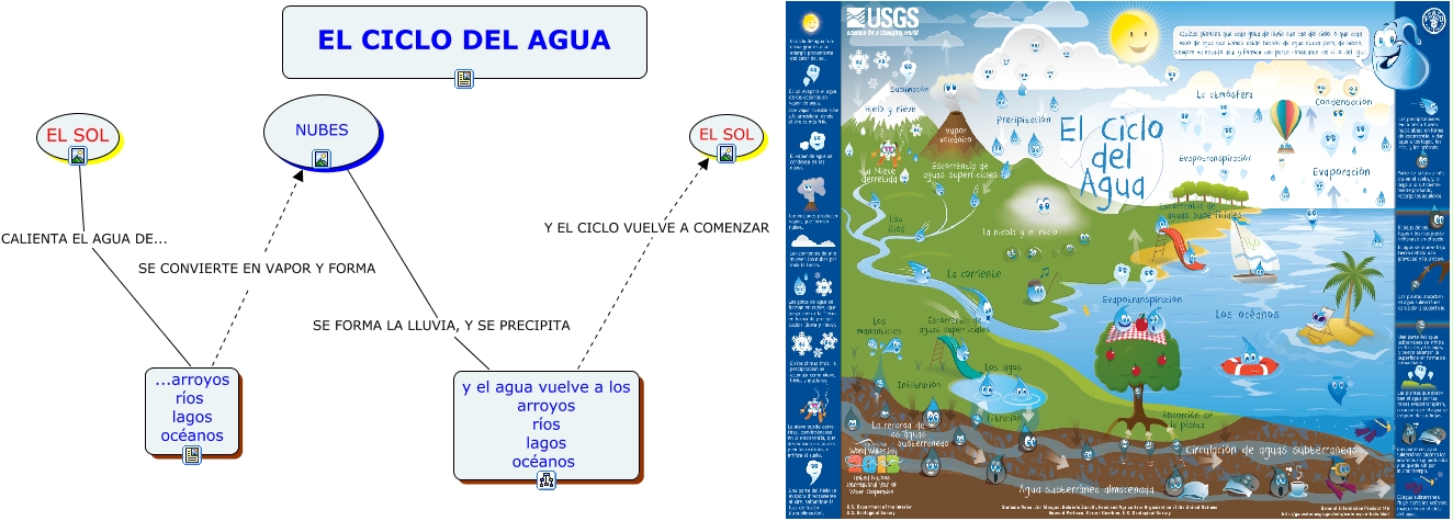 Este Cmap, tiene información relacionada con: El ciclo del agua Pablo Unir, EL SOL CALIENTA EL AGUA DE... ...arroyos ríos lagos océanos, ...arroyos ríos lagos océanos SE CONVIERTE EN VAPOR Y FORMA NUBES, y el agua vuelve a los arroyos ríos lagos océanos Y EL CICLO VUELVE A COMENZAR EL SOL, NUBES SE FORMA LA LLUVIA, Y SE PRECIPITA y el agua vuelve a los arroyos ríos lagos océanos