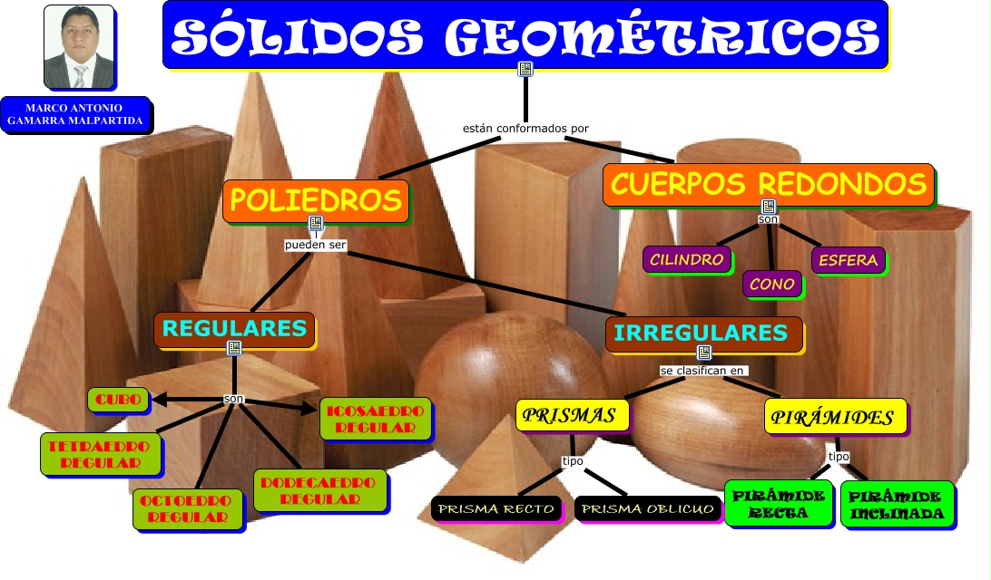 Este Cmap, tiene información relacionada con: MARCO=SOLIDOS GEOMETRICOS, REGULARES son OCTOEDRO REGULAR, PRISMAS tipo PRISMA OBLICUO, IRREGULARES se clasifican en PRISMAS, CUERPOS REDONDOS son CILINDRO, REGULARES son CUBO, CUERPOS REDONDOS son CONO, PRISMAS tipo PRISMA RECTO, POLIEDROS pueden ser REGULARES, POLIEDROS pueden ser IRREGULARES, REGULARES son DODECAEDRO REGULAR, PIRÁMIDES tipo PIRÁMIDE INCLINADA, REGULARES son ICOSAEDRO REGULAR, CUERPOS REDONDOS son ESFERA, IRREGULARES se clasifican en PIRÁMIDES, REGULARES son TETRAEDRO REGULAR, SÓLIDOS GEOMÉTRICOS están conformados por POLIEDROS, PIRÁMIDES tipo PIRÁMIDE RECTA, SÓLIDOS GEOMÉTRICOS están conformados por CUERPOS REDONDOS