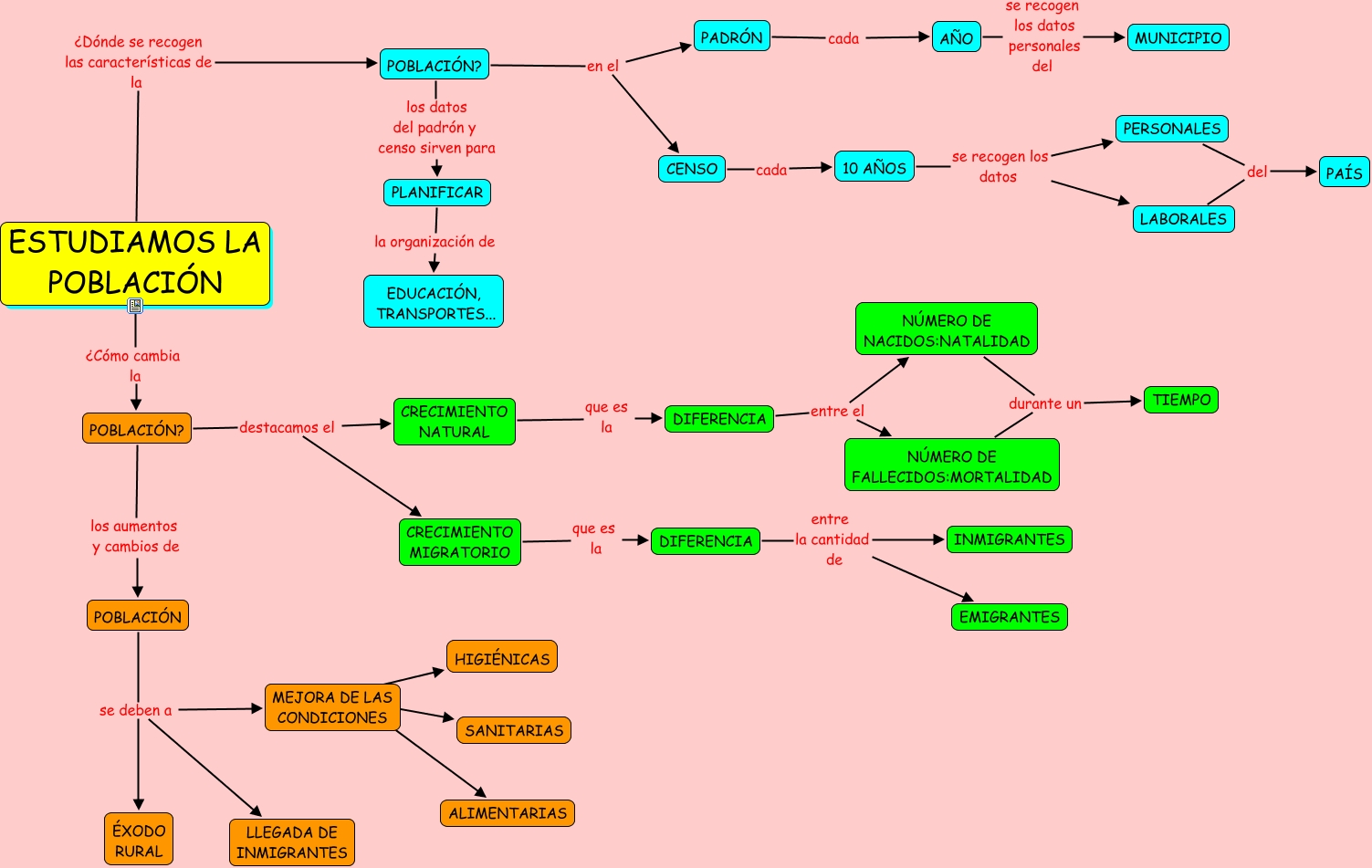 Este Cmap, tiene información relacionada con: ESTUDIAMOS LA POBLACIÓN, PADRÓN cada AÑO, MEJORA DE LAS CONDICIONES ???? HIGIÉNICAS, POBLACIÓN se deben a MEJORA DE LAS CONDICIONES, DIFERENCIA entre el NÚMERO DE FALLECIDOS:MORTALIDAD, MEJORA DE LAS CONDICIONES ???? ALIMENTARIAS, DIFERENCIA entre la cantidad de EMIGRANTES, DIFERENCIA entre la cantidad de INMIGRANTES, LABORALES del PA�?S, ESTUDIAMOS LA POBLACIÓN ¿Dónde se recogen las características de la POBLACIÓN?, POBLACIÓN se deben a LLEGADA DE INMIGRANTES, PLANIFICAR la organización de EDUCACIÓN, TRANSPORTES..., POBLACIÓN? los aumentos y cambios de POBLACIÓN, POBLACIÓN se deben a ÉXODO RURAL, CENSO cada 10 AÑOS, 10 AÑOS se recogen los datos PERSONALES, AÑO se recogen los datos personales del MUNICIPIO, DIFERENCIA entre el NÚMERO DE NACIDOS:NATALIDAD, POBLACIÓN? en el CENSO, POBLACIÓN? en el PADRÓN, POBLACIÓN? destacamos el CRECIMIENTO MIGRATORIO