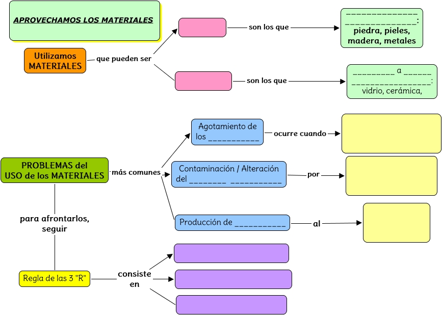 Este Cmap, tiene información relacionada con: APROVECHAMOS LOS MATERIALES-MUDO, Regla de las 3 "R" consiste en, Contaminación / Alteración del ________ ___________ por, son los que ______________ ______________: piedra, pieles, madera, metales, Regla de las 3 "R" consiste en, Producción de ___________ al, PROBLEMAS del USO de los MATERIALES más comunes Contaminación / Alteración del ________ ___________, son los que _________ a ______ _________________: vidrio, cerámica,, Agotamiento de los ___________ ocurre cuando, PROBLEMAS del USO de los MATERIALES más comunes Agotamiento de los ___________, PROBLEMAS del USO de los MATERIALES más comunes Producción de ___________, Utilizamos MATERIALES que pueden ser, PROBLEMAS del USO de los MATERIALES para afrontarlos, seguir Regla de las 3 "R", Utilizamos MATERIALES que pueden ser, Regla de las 3 "R" consiste en