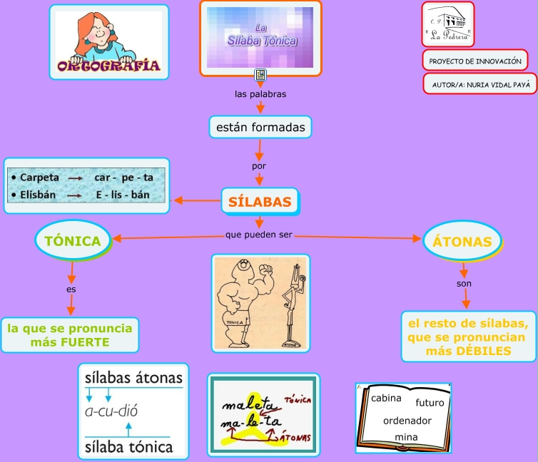 Este Cmap, tiene información relacionada con: TEMA 3 La sílaba tónica, están formadas por SÍLABAS, SÍLABAS que pueden ser TÓNICA, ÁTONAS son el resto de sílabas, que se pronuncian más DÉBILES, TÓNICA es la que se pronuncia más FUERTE, SÍLABAS, SÍLABAS que pueden ser ÁTONAS, las palabras están formadas