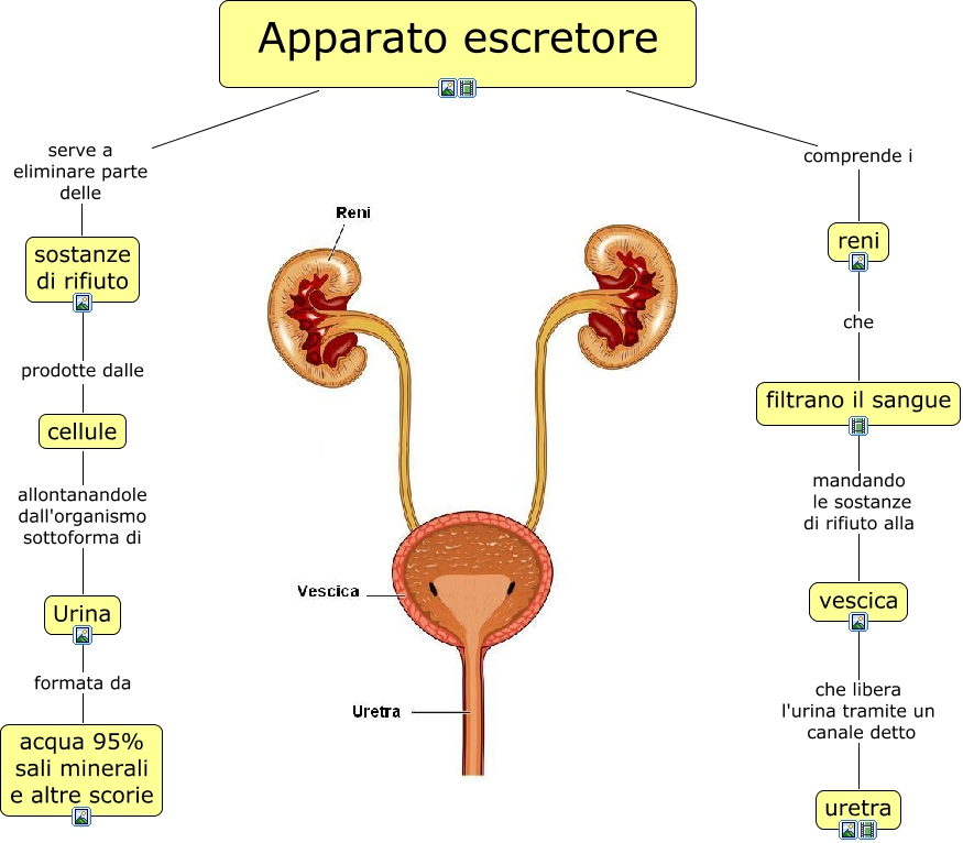 Questa Cmap, creata con IHMC CmapTools, contiene informazioni relative a: apparato escretore, Apparato escretore serve a eliminare parte delle sostanze di rifiuto, vescica che libera l'urina tramite un canale detto uretra, Urina formata da acqua 95% sali minerali e altre scorie, sostanze di rifiuto prodotte dalle cellule, reni che filtrano il sangue, Apparato escretore comprende i reni, cellule allontanandole dall'organismo sottoforma di Urina, filtrano il sangue mandando le sostanze di rifiuto alla vescica