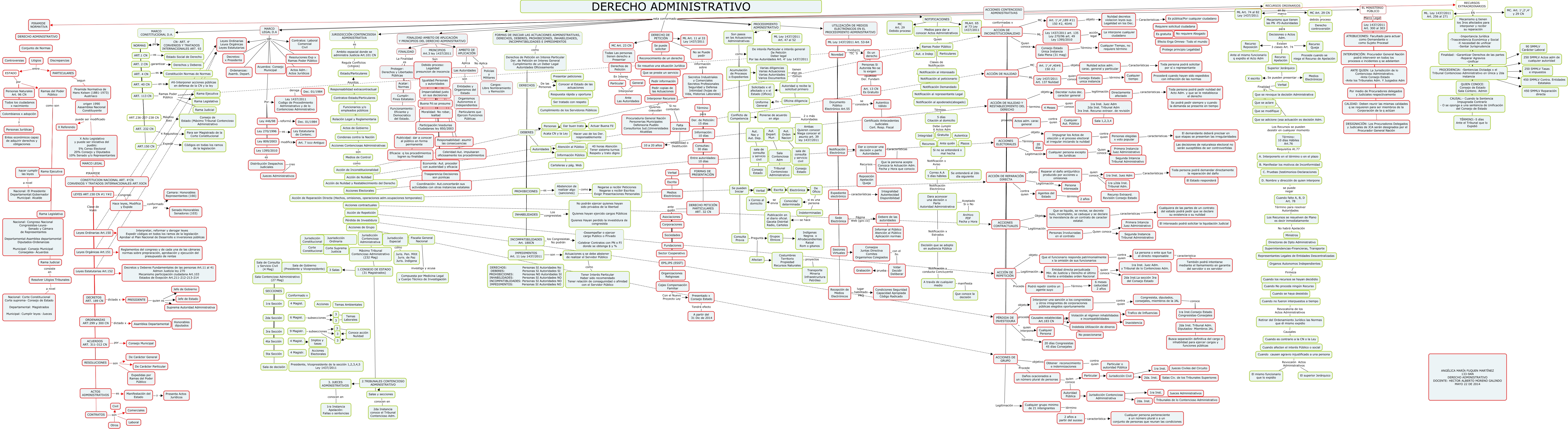 Este Cmap, tiene información relacionada con: DERECHO, Término para Consultas: 30 días, Daños ocacionados a un número plural de personas quien conoce Autoridad Pública, DERECHO ADMINISTRATIVO esta conformado JURISDICCIÓN CONTENCISOSA ADMINISTRATIVA, 4 Magist. ???? Imptos y tasas, ART. 113 CN Ramas Poder Público Rama Legislativa, Que se liquide, se revise, se decrete nulo, incompleto, se caduque y se declare la inexistencia de un contrato de caracter estatal. caracteristicas Cualquiera de las partes de un contrato del estado podrá pedir que se declare su existencia o su nulidad, RESOLUCIONES son De Carácter Particular, Acción de Inconstitucionalidad ???? ACCION DE INCONSTITUCIONALIDAD, Cualquier persona excepto las Juridicas Quien conoce Primera Instancia Juez Administrativo, LEYES ART.150 CN #1 Y#2 Congreso Hace leyes, Modifica y Expide, ACCIONES ELECTORALES objeto Impugnar los Actos de elección y el proceso electoral al irregular iniciando la nulidad, Sede Electrónica Página Web (gov.co) Debere de las autoridades, Congresista, diputados, consejales, miembros de la JAL conoce 2da Inst. Tribunal Adm. Diputados- Miembros JAL, NOTIFICACIONES ???? Medios para dar a conocer Actos Administrativos, MARCO LEGAL D.A Por Ley 809/2003, 1ra Inst. Juez Adm Características Toda persona podrá demandar directamente la reparación del daño, EL MINISTERIO PÚBLICO Marco Legal ANTE QUIEN: La Jurisdicción de lo Contencioso Administrativo. -Ante Consejo Estado -Ante los Tribunales Adm. Y Juzgados Adm, FORMAS DE PRESENTACIÓN ???? Verbal, Nulidad decretos violacion leyes sup. Legalidad en los Dec. Caracteristicas Es pública/Por cualquier ciudadano, PRINCIPIOS Art.3 ley 1437/2011 Son Moralidad: No robar, lealtad